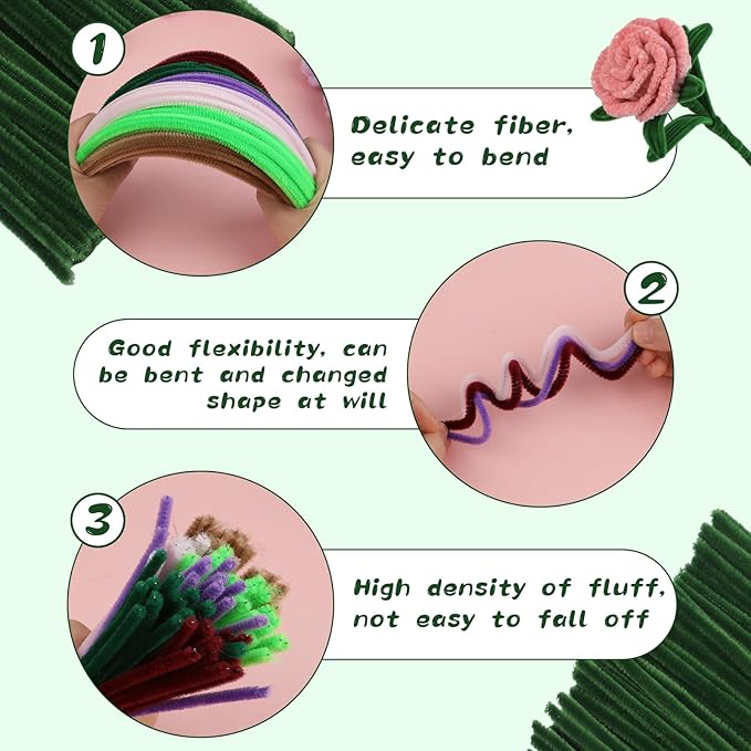 - Soft Material: These pipe cleaners are made of wire and chenille material, durable, soft, and comfortable, it can be flexibly bent into creative shapes and figures