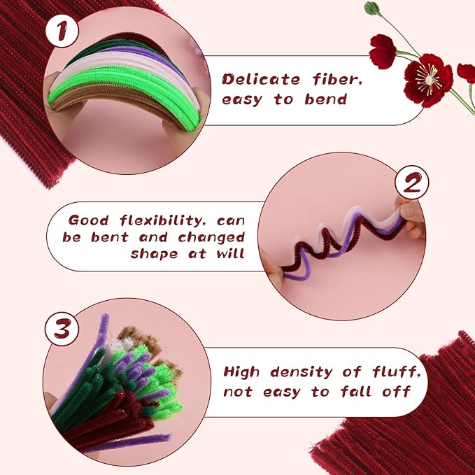 - Soft Material: These pipe cleaners are made of wire and chenille material, durable, soft, and comfortable, it can be flexibly bent into creative shapes and figures