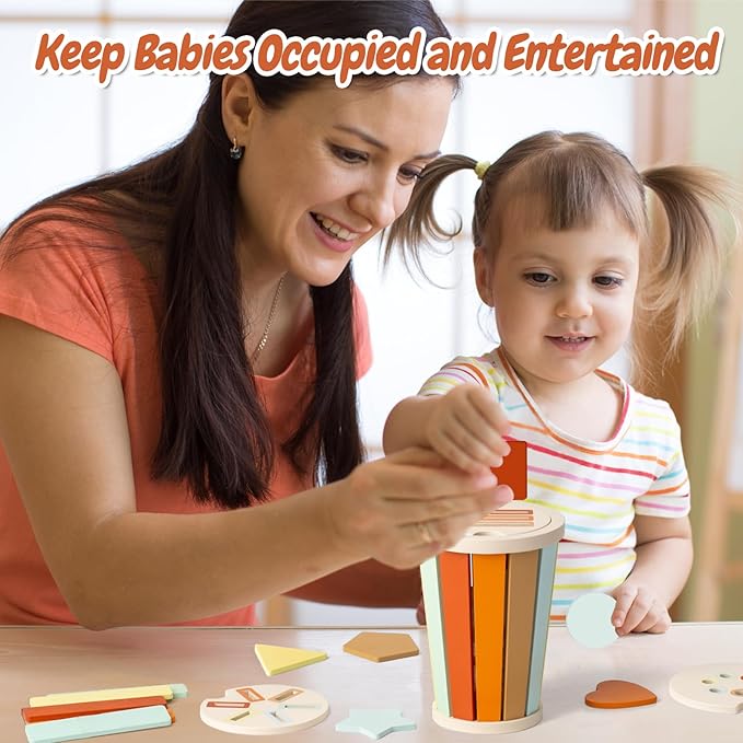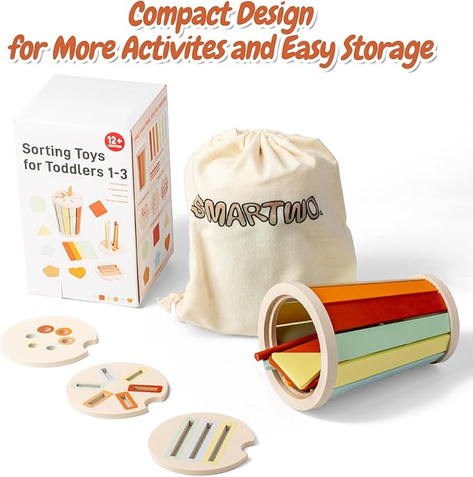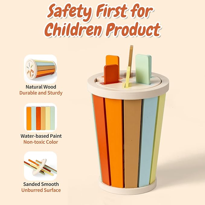 - [Sturdy and Safe Toys for Children] This Montessori sensory sorting activity toy is made of natural wood, durable for long lasting play; water-based paint, non-toxic, safe for babies; smooth edges and no sharp corner. The smallest wooden piece is 55mm, no choking hazard
