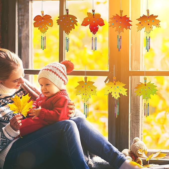 - Easy operation: Start by painting the fall leaves-shaped wooden pieces with your favorite colors. Then, thread the silver string through the pre-drilled holes and attach the wind chimes. In no time, you'll have a unique wooden Thanksgiving maple leaves wind chime kit ready to hang on trees, doors, windows, or walls. Enjoy the charming display as it sways in the breeze and produces delightful sounds. Your students or children will love creating these fun DIY fall wind chime crafts.
