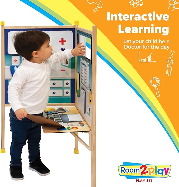 • 🧑‍🚒 EDUCATIONAL AND INTERACTIVE - Room2Play Wooden School Playset encourages pretend play, social interaction, problem solving, creativity, imagination, and role play. Get your child on early glimpse of life at school.
