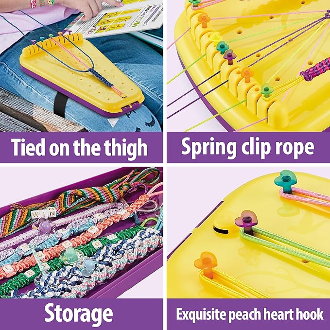 - Innovative Design, Easy to Make:It is designed with a unique feature that is easy to tie around the thigh and equipped with Velcro straps, so you are not limited to the desktop when making. It is more convenient to tie it around the thigh and ensure that it will not fall off. 12 built-in spring slots can separate and organize the wires for easy making. Step-by-step instructions for different bracelet styles help children easily master them.