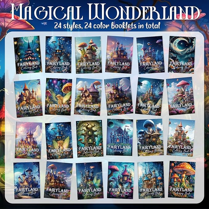 - An Array of Illustrations: the package includes 24 fairyland adult coloring books, each filled with beautiful, intricate illustrations, inspired by enchanted fairylands, ready to be colored; Explore an array of mystical creatures and surreal landscapes