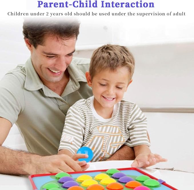 58 Pcs Button Art Toys for Toddlers,Color Matching Mosaic Pegboard for Toddlers,Early Learning Educational Toys Toddler Activities,Include 12 Pictures and 46 Buttons with Box