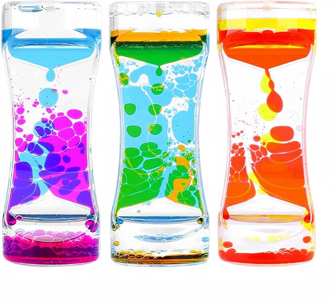 Oneshow Liquid Motion Bubbler Timer Oil Hourglass Water Timers Fidget Toy for Classroom Sensory Toys for Kids Activity Calm Relaxing Desk Decor Stress Relief Toys for Adults Gifts 3 Pack