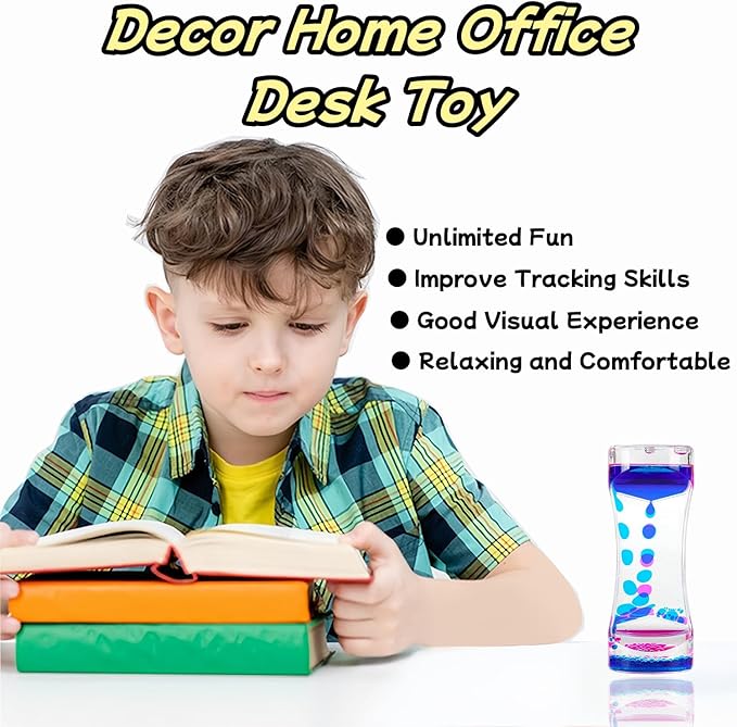 - Liquid Motion Bubbler Sensory Toys: This fascinating liquid motion can be used as a therapeutic toy and stress reliever, it is both fun and stress relieving, loved by children and adults. It requires no batteries or power, just turn it over and it restarts and the energy never runs out