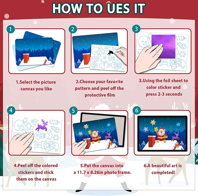 - 【Foil Art & Craft Activity】Let your child's imagination run wild with the amazing, mess free foil arts and crafts activity. They can create beautiful pictures featuring Snowman, Reindeer Mascot, Bear, Polar Bear, Birds, rabbits, Christmas Tree and more decorations, inspiring hours of creative fun for kids.