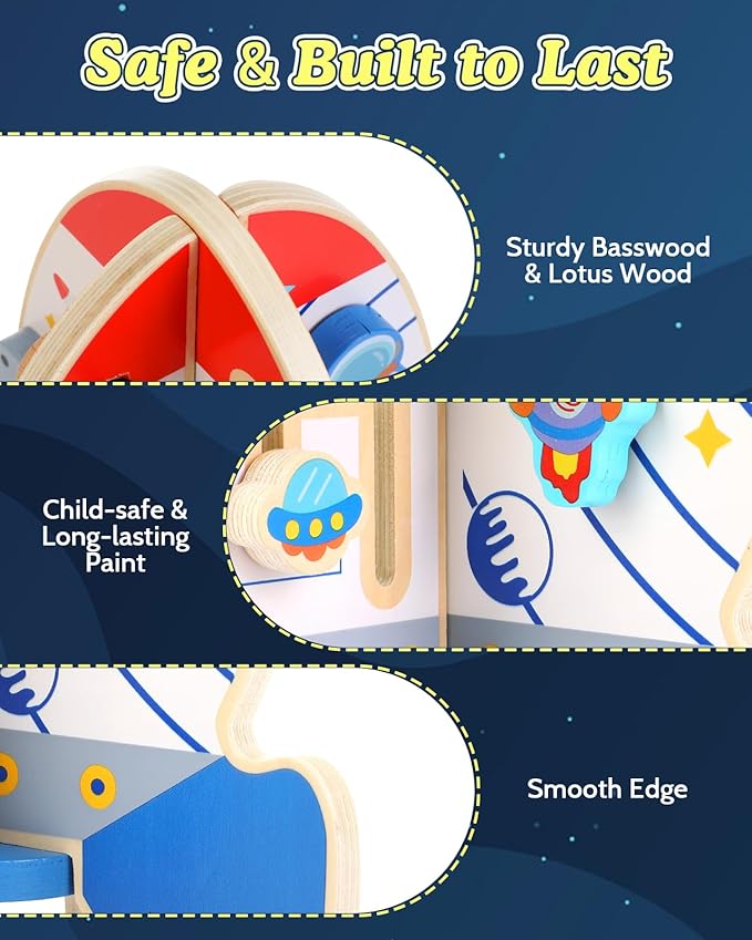 - 𝐄𝐧𝐝𝐥𝐞𝐬𝐬 𝐒𝐜𝐫𝐞𝐞𝐧-𝐅𝐫𝐞𝐞 𝐅𝐮𝐧: Measuring 29.5 x 20.3 x 20.3 cm, this activity cube is perfectly sized for small hands of kids ages 2 3 4 and 24 months+ to explore and fits conveniently in playrooms and bedrooms. From navigating a bead maze to piloting a wooden rocket ship, this unique activity toy provides endless entertainment and educational experiences and screen-free fun