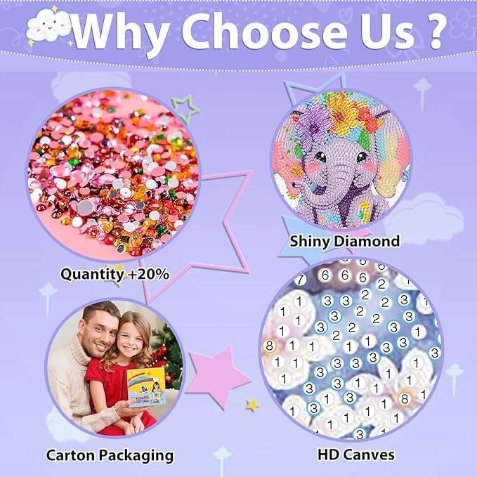 - Add Fun to Life: Diamond painting kits's canvas is rich in color, printed in high definition, the diamonds are sparkling, and it comes with cartoon packaging. After completion, it can be put into photo frame placed on the desktop or hung on the wall to decorate the room, making the room full of vitality and making little artist proud of their work