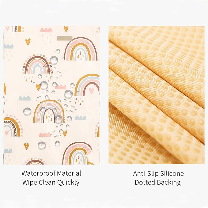 - Multiple Uses: Perfect Size for Travel: 51" x 51" ,1.1 pounds light weight easy to fold and compact making it ideal for travel. It can be used as a splat mat for mealtimes, a tablecloth for play & drawing time, or a picnic mat outdoor in a park.