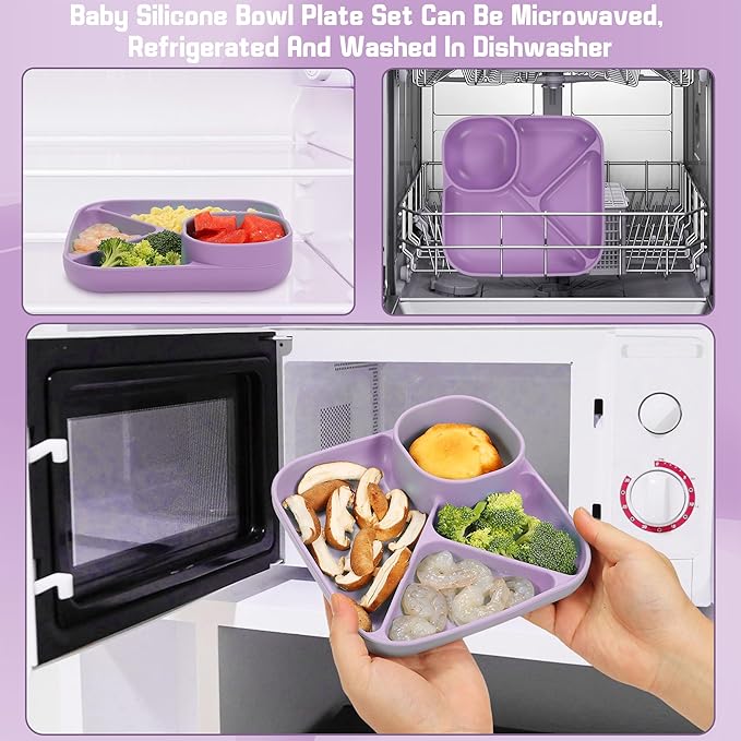 - A Durable Dining Set: Silicone baby led weaning set is hard to stain or damage and won't hurt a teething toddler's gums. It's also soft, sturdy, flexible, and without sharp edges. The baby feeding set includes everything you need for baby feeding