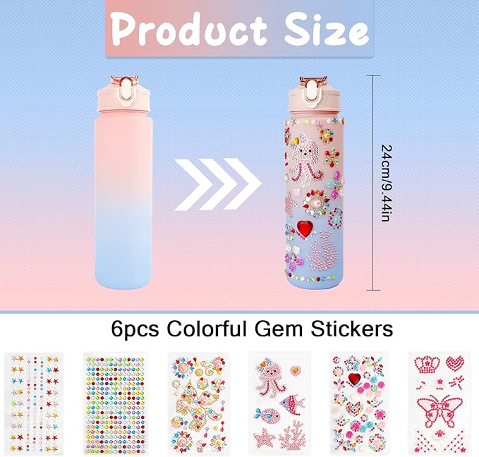 - Decorate Your Own Water Bottle: This fun set includes: 1 x water bottle, 1 x beautiful gift box, 6 sheets colorful gemstone stickers. Our DIY water bottle kits allow girls to personalize their own water bottles and create one-of-a-kind masterpieces that are more than just a craft project, they are a way for girls to express their unique style and personality.