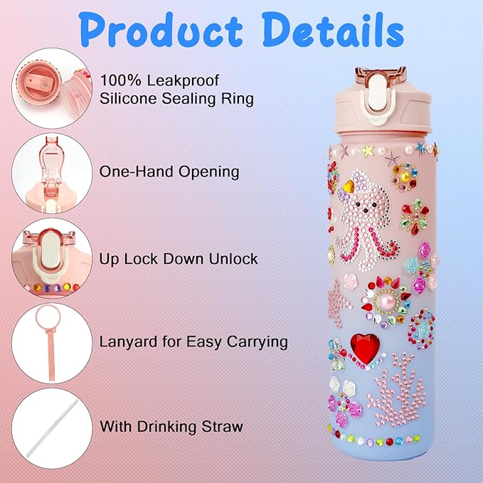 - Ideal DIY Gift for Girls: How special and interesting DIY gift for girls on any holiday or birthday! This fun and engaging art and craft supplies kit includes everything you need to beautify and personalize your water bottle craft kit! Keep girls busy with their favorite simple craft activities: Just peel off the glittery gemstone stickers and attach them to the water bottle!