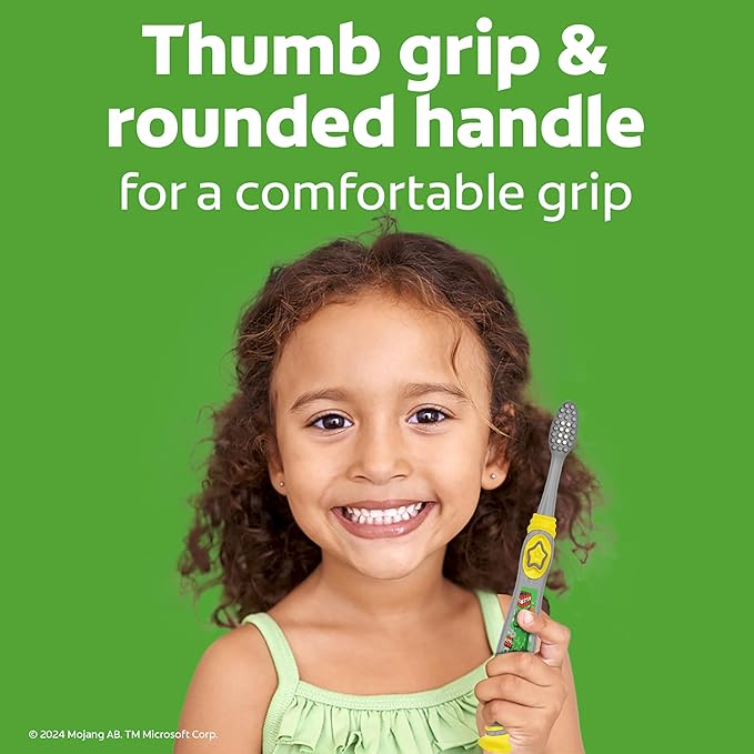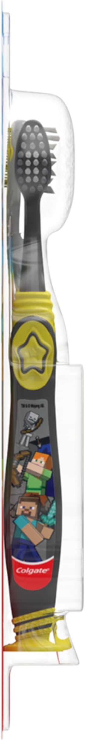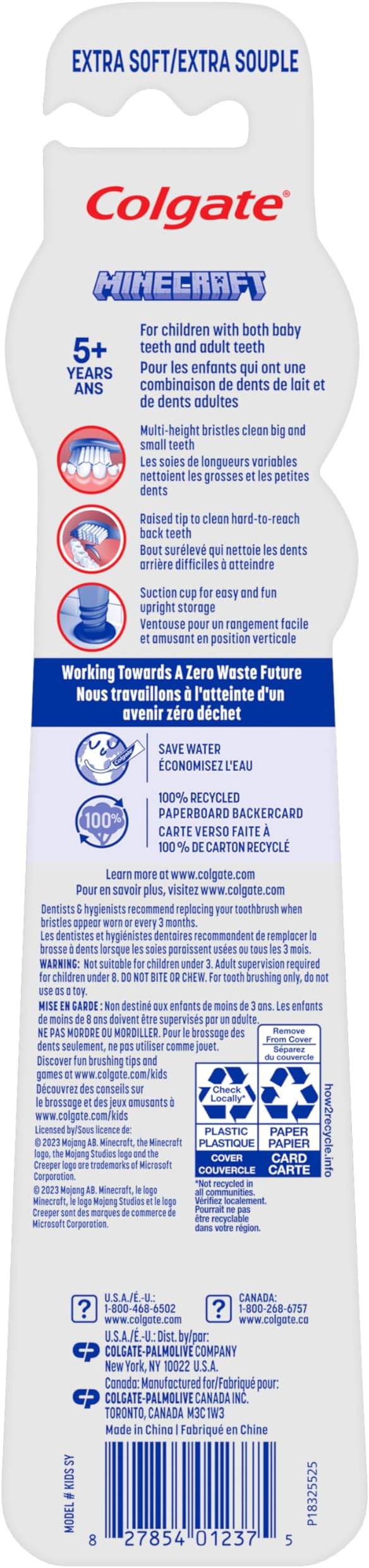 Colgate Kids Minecraft Toothbrush Pack, Extra Soft Toothbrushes for Kids, Includes Built-in Suction Cups for Easy Upright Storage, for Kids with Baby Teeth and Adult Teeth, 2 Count