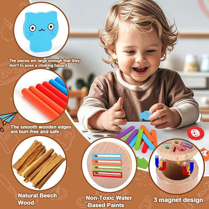 - Safe and Sturdy Quality: fine motor toys is made from sturdy beechwood, it has an appearance and smooth edges, free from sharp corners or burrs, ensuring a secure and enjoyable experience for kids