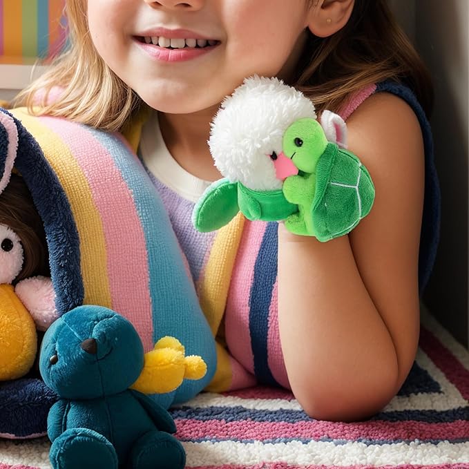 jarbins Stuffed Turtle Slap Bracelets Animal Turtle Wrist Plush Slap Bracelets Wristband for Children Birthday Party Favors Kids Toy Decor
