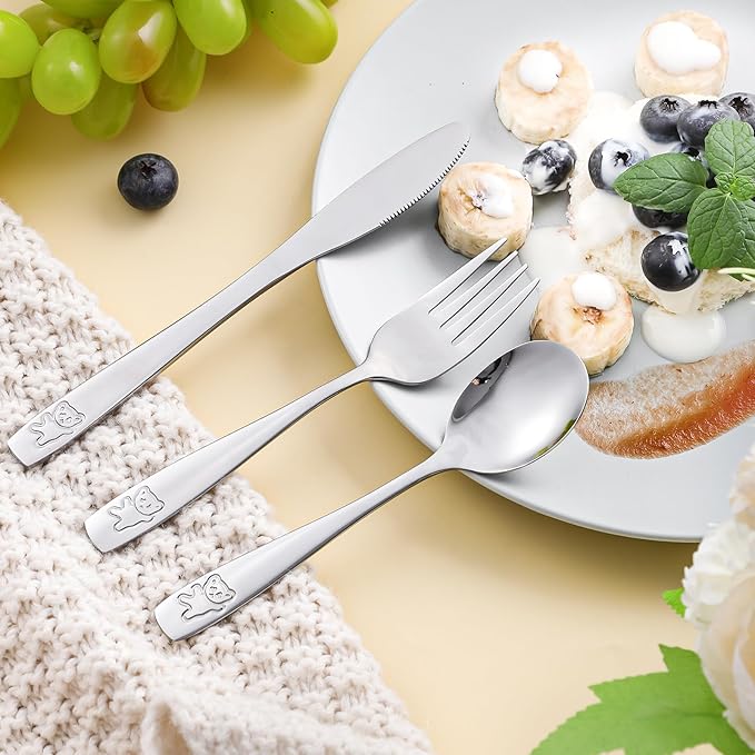 - 【SAFER DINING】The kids silverware are made of 100% high-quality 18/0 stainless steel that is mirror polished and nickel-free,It is rustproof and safe for your child's health, dishwasher safe.