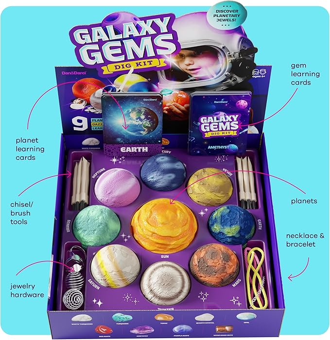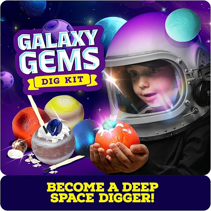 Galaxy Gem Dig Kit for Kids - Gemstones Digging Science Kits for Kid Age 6-7, 6-8, 8-10 - Gifts for 6 7 8 9 10 11 Year Old Boys & Girls - Planet Space Toys for Ages 8-10 - STEM Stuff for Boy & Girl