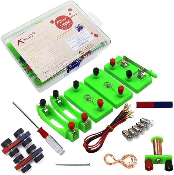 - 【MAGNETISM EXPERIMENT】- Electricity and magnetism kit for students can set up many projects: Magnet Car, Homemade Electromagnet, Simple Circuit, Series Circuit, Parallel Circuit, Magnetic Control Switch and other interesting projects. Physics lab kit with a list of experiments, help children to complete the experiment better.