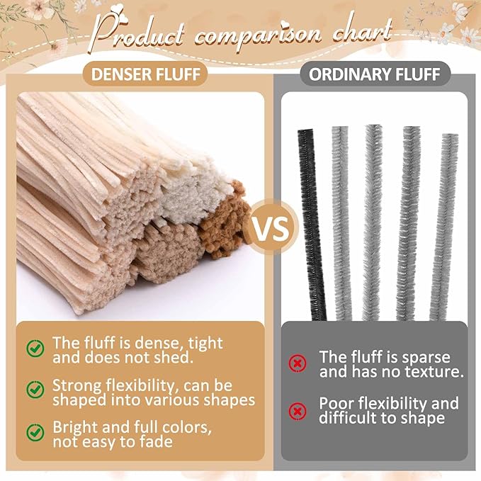 - Soft and User Friendly: the fuzzy sticks are soft to the touch, making them safe to use for a wide variety of craft projects; They are easily bendable allowing you to twist and twine them into many shapes you fancy, such as animal, fruits, flower and so on; Gear up for an enjoyable, hassle less, and effective crafting experience with these user friendly pipe cleaners; Enjoy crafting the way it should be, fun, and creatively stimulating