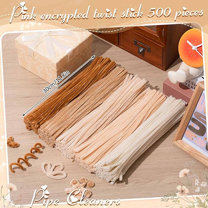 Peryiter 500 Pieces Pipe Cleaners Chenille Stems 12 Inch Craft Supplies Bulk for DIY Art and Craft Projects Creative Gift Wrapping Party Decorations(Boho Color,12 Inch)