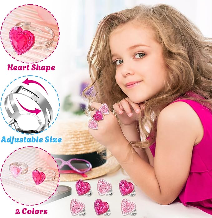 - 110Pcs Pink Party Favors - Looking to add a touch of fun and elegance to your next pink-themed party? Our pink party favors are a great addition to any celebration. You will get 12 heart glasses (2 colors), 12 pink party favor bags, 12 heart necklaces (2 colors), 12 rings (3 styles), 12 pink bracelets with bows, and 50 pink stickers. Such rich favors can be provided to 12 children at one time. Let's immerse yourself in a pink world and hold a wonderful hot pink party with friends