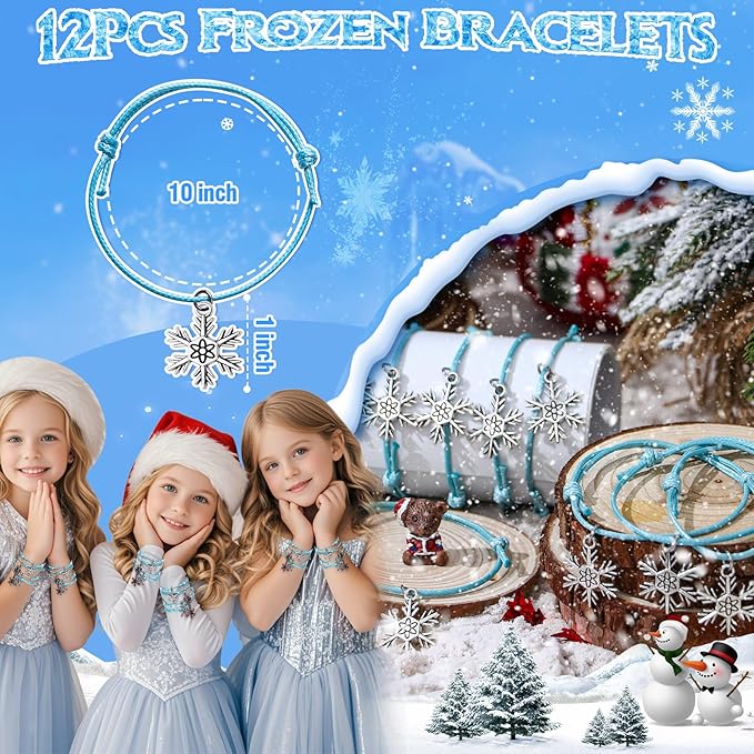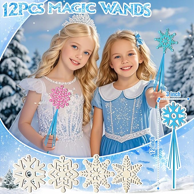 - Frozen Birthday Party Favors: We have carefully prepared 12 sets of frozen themed party favors, and children will love these small gifts. The set includes 12 magic wands (DIY required, pictures with step-by-step instructions), 12 bracelets, 12 gift bags, 12 rings, 50 stickers