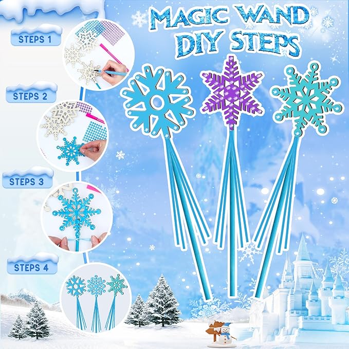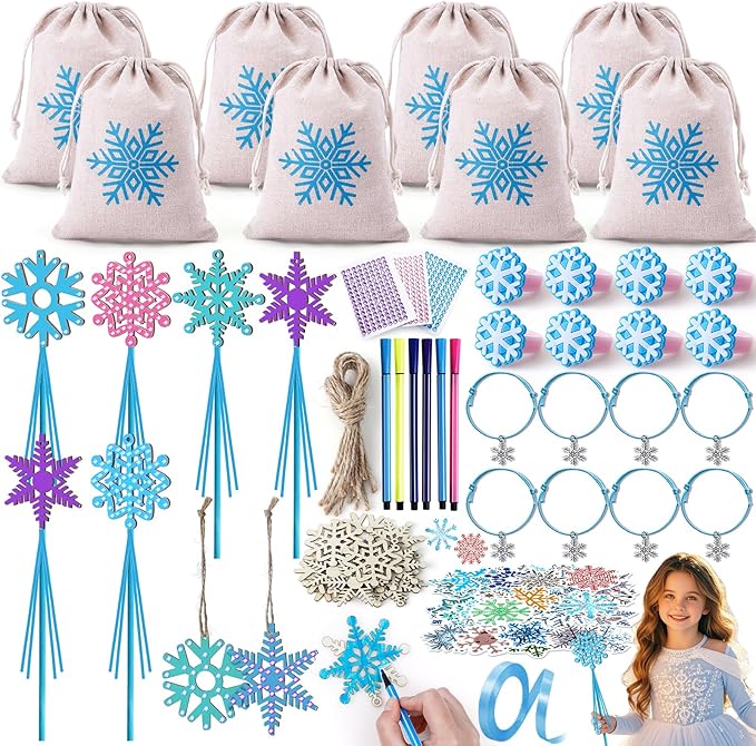 - Frozen Party Supplies: Different from the usual frozen party favor sets, we have specially prepared magic wand (needs DIY), which is conducive to improving kid's imagination and hands-on ability. Rings and bracelets can be used for daily dress-up, bags can be used for mutual gifts, and stickers can be used to dress up notebooks, school bags, etc. Great for elsa party favors, frozen goodie bag stuffers, frozen elsa pinata, winter party favors for kids, winter wonderland party favors