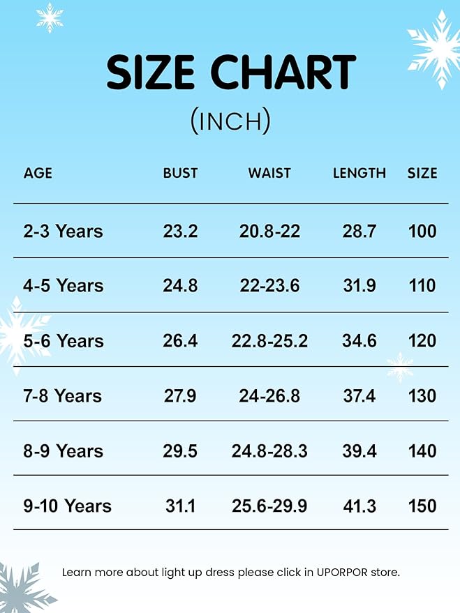 - No Assembly Needed ---> UPORPOR's princess dress features built-in hassle-free LED lights. No installation needed—just unwrap and let the joy of princess's twirling begin