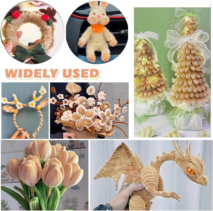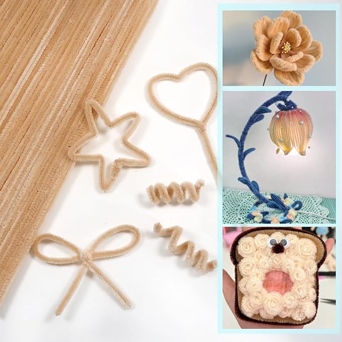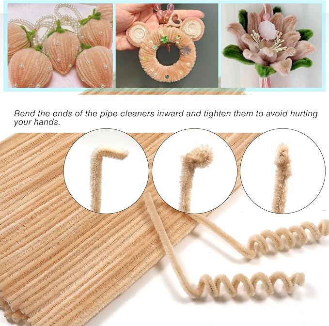 - Size and Colors: Beige pipe cleaners, 0.24 X12 inch (6 mm x 300 mm); Enough quantity to meet your various needs of DIY craft creations