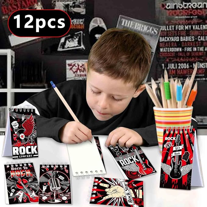 - Born to Rock Designs: The rock music theme party favors sets are composed of rock graphic designs, such as records, discs, microphones, rock gestures, guitars, musical notes, etc. Full of music party atmosphere, they will boost your party, and let your families enjoy the rock theme party.