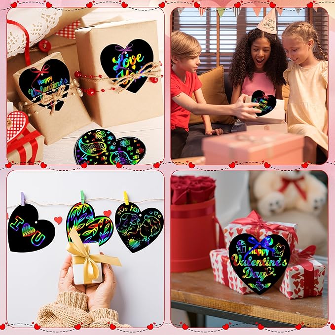 - [Endless Possibilities]: Perfect for school Valentines for classroom settings, gather friends and family for a DIY scratch paper session. Display the creations with the cords as Valentines Day accessories or as kids Valentines gifts. Ideal for kids Valentines Day gifts for school, or as thoughtful classroom Valentines Day gifts for kids.