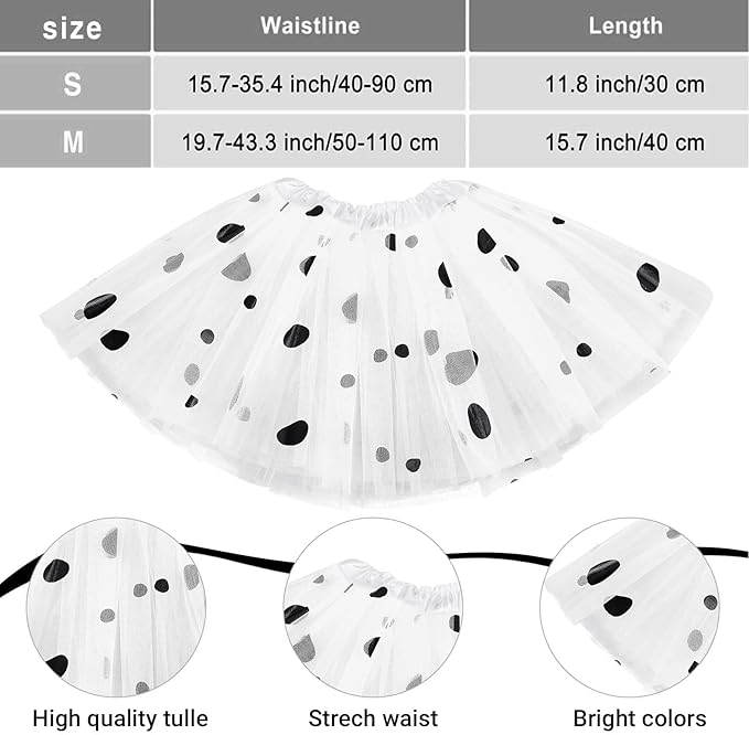 • 【Quality and reliable】dalmatian tutu skirt is made of tulle, looks very fluffy and flowy. Dog ears headband is made of soft fabric and a flexible hair hoop,soft and comfortable,secure and durable.The collar is made of velvet,soft and comfortable,safety and skin friendly.The dalmatian dots are mainly made of felt, not easy to fade or break, easy to accompany you for a long time.Crayons can be applied to any part of the body,safe and easy to wipe.