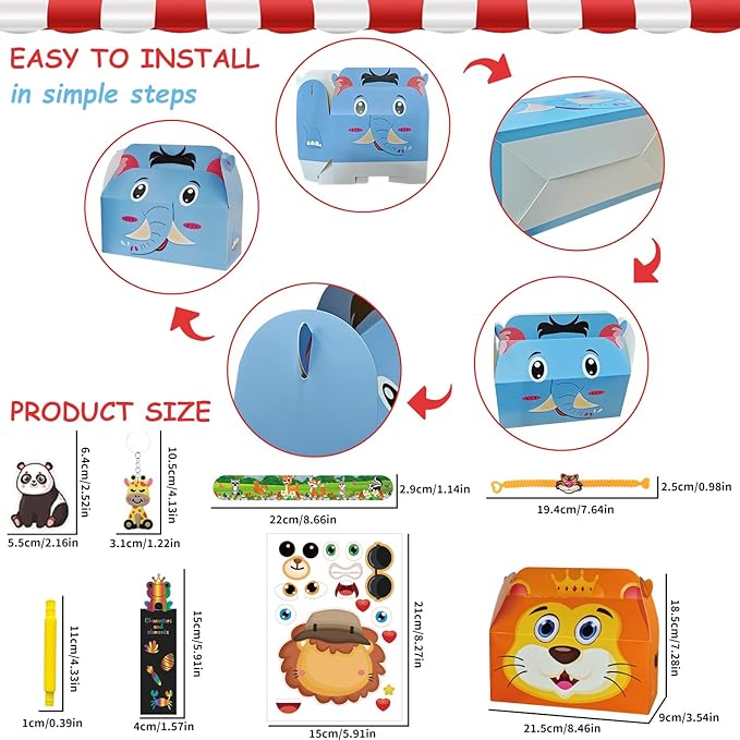- A Jungle of Fun and Creativity:Our safari-themed set is the ultimate fun for kids.12 PCS Animal Face originality Stickers let your imagination run wild!The 12 PCS Animals Slap Bracelets are not only fun to wear but also great for sharing among friend.As party favors or stocking stuffers for kids, this inspires imagination and social interaction,making it a must-have for any jungle safari birthday party trinkets or just everyday play at home or in kindergarten