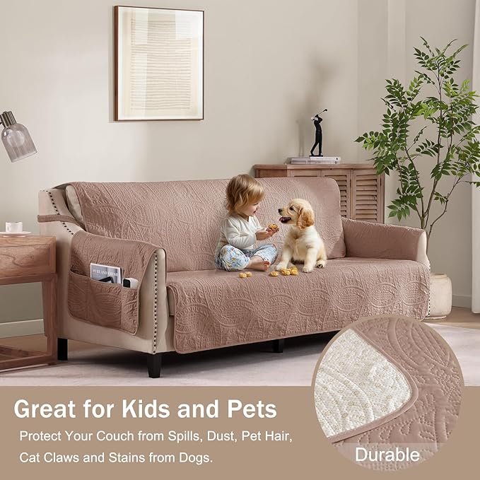 - Coin Medallion Quilting Designed Pattern: adding a refined modern taste to your living room decor with this X-large sofa cover, it is an elegant coin medallion embossed pattern, made with a pinsonic heat pressed technology that without threads, resulting in sleek and visually appealing slipcovers; that creates a stronger and more durable couch cover, protecting your X-large sofa couch from spills, dust, pet hair, cat claws and stains from dogs