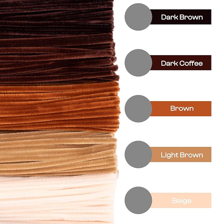 - Value Package: Coming with 500 pieces pipe cleaners in different shades of pink(Dark Brown, Dark Coffee, Brown, Light Brown, Belge); Each shade comprises of 100 pieces, providing a diverse range for your crafting and decorating needs; The multicolor variety makes it attractive and appealin